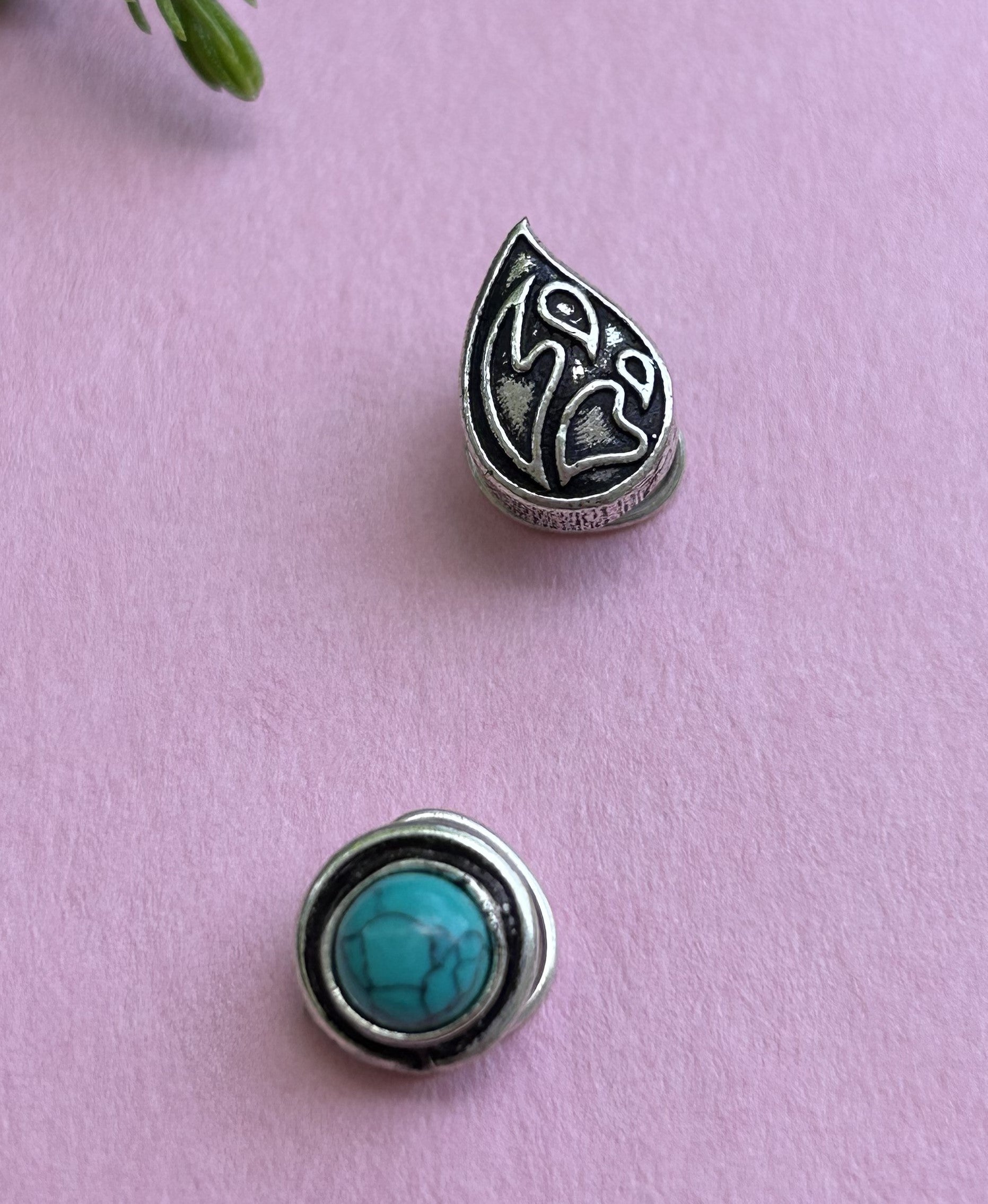 Elevate your everyday look with this exclusive combo set of two nosepins, designed especially for pierced noses. One nosepin features a delicate turquoise stone, adding a refreshing pop of color, while the other showcases a classic minimalist design that complements any outfit.