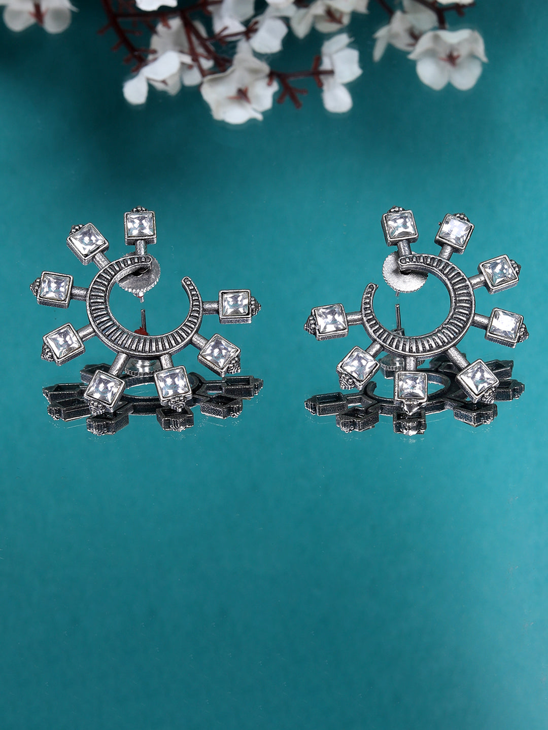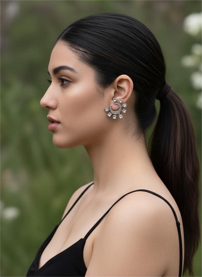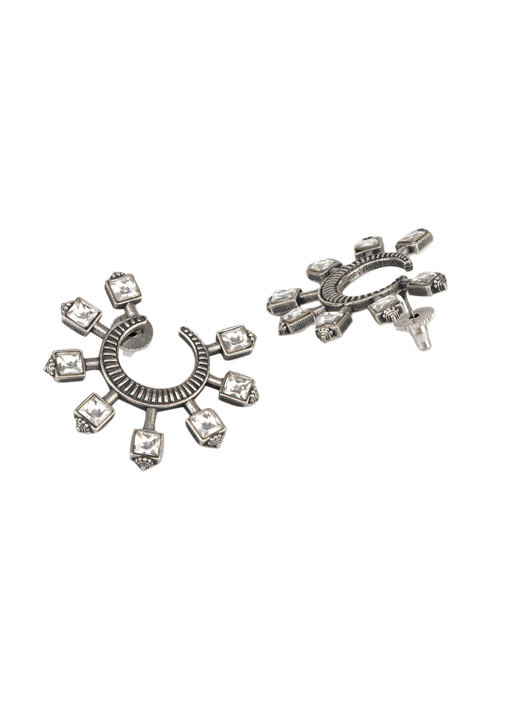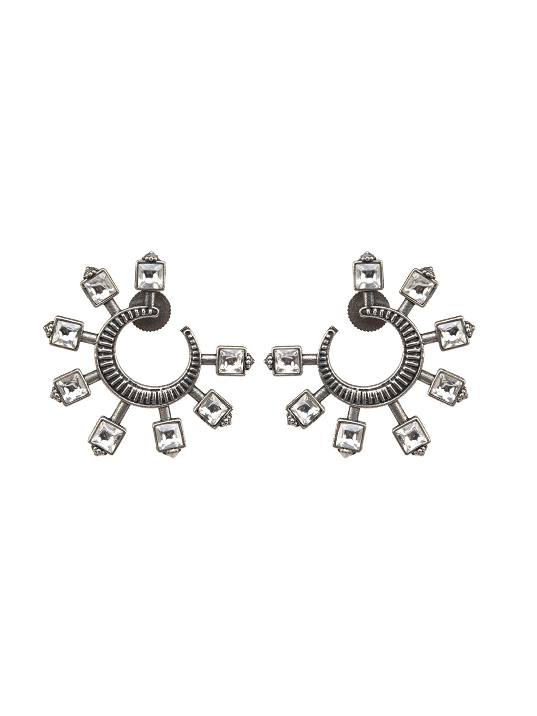 These finely crafted silver-tone earrings feature delicate floral patterns with elegant bead accents, making them an ideal accessory for blending traditional charm with modern sophistication. Perfect for festive occasions or elevating everyday ensembles.