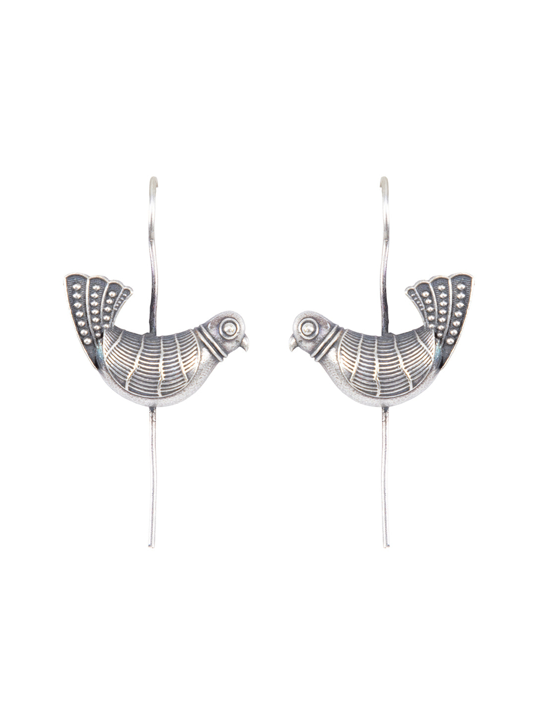 | Celebrate free spirit and folk aesthetics with these exquisitely detailed Folk Sparrow Ear Cuffs. Featuring a sculpted bird motif with delicate dotted textures, these oxidised cuffs hug the ear beautifully, creating a bold yet graceful silhouette. A must-have for lovers of handcrafted and offbeat jewellery. |