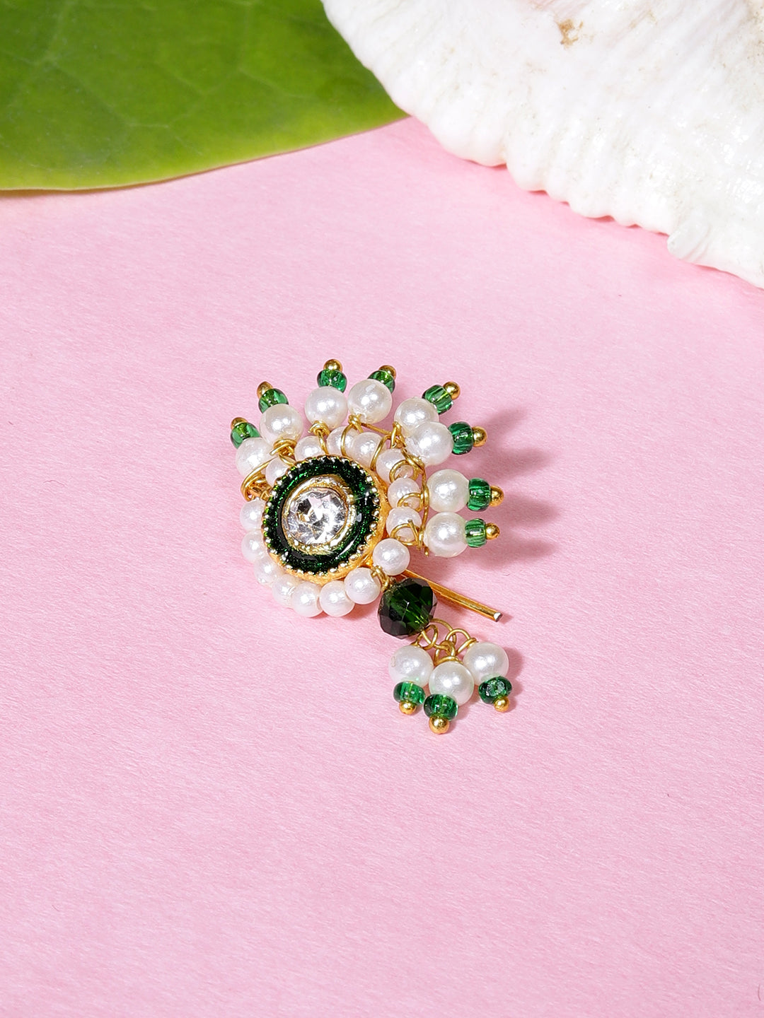 Moonlit legacy in green—this piece blends the shimmer of pearls with the depth of green enamel, echoing ancestral elegance with a celestial twist.
