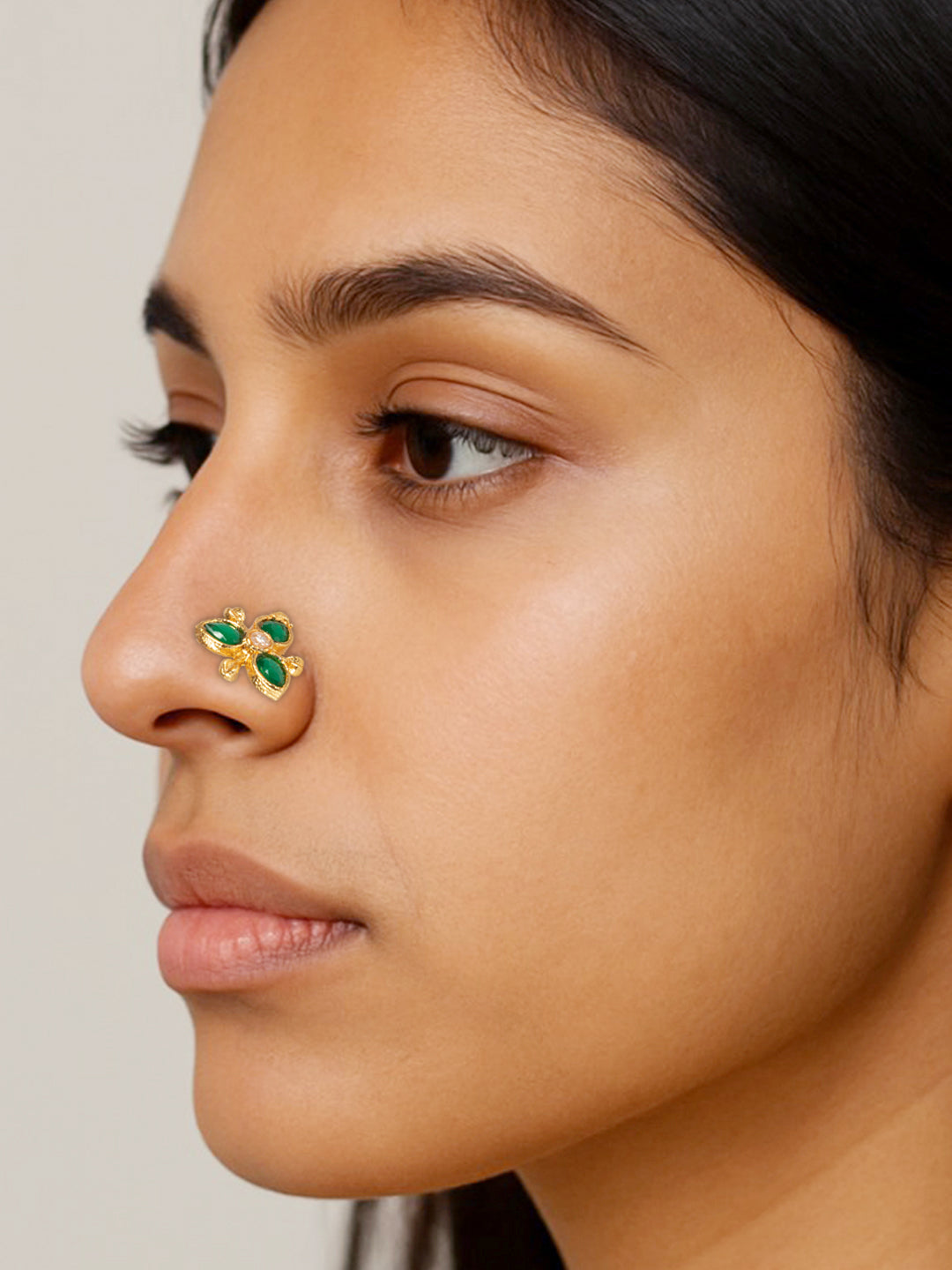 Three emerald drops bloom like sacred rivers meeting at a divine juncture, encircling a radiant star of clarity. Panna Phool channels harmony, intuition, and the power of threes—body, mind, spirit; past, present, future; creation, preservation, transformation. A talisman for those who walk with grace and purpose.