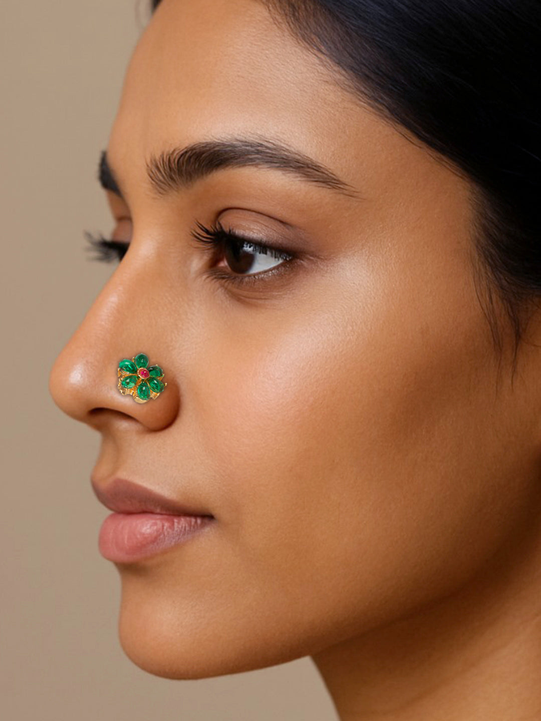 With petals kissed by dew and hues drawn from a garden in bloom, Spring Bloom Nosepin whispesr tales of renewal and romance. The soft green evokes tender leaves, while the blush pink recalls the first bloom of love. Framed in golden light, its an ode to grace—perfect for moments when you wish to carry spring in your step and poetry in your presence.