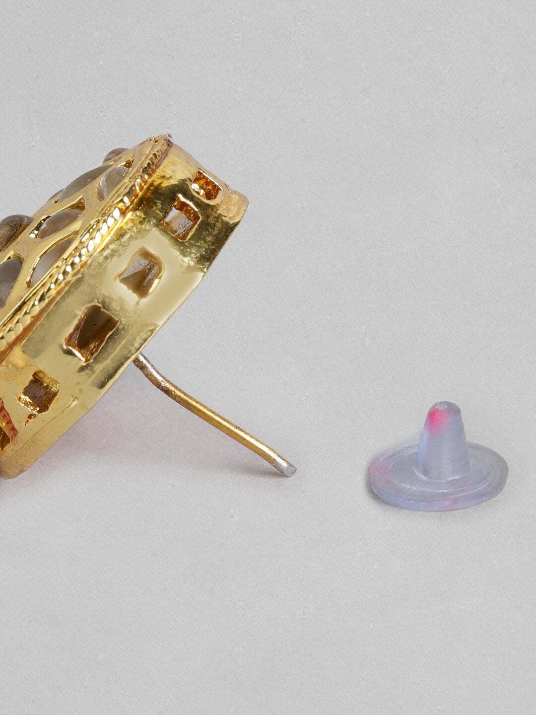 A regal cascade of floral medallions and garnet beads, this necklace evokes the richness of heirloom artistry. Each gold-toned bloom is framed with clear stones and crowned by clusters of deep maroon beads, creating a rhythm of warmth and elegance. Perfect for festive evenings, bridal trousseaus, or moments that call for timeless grace.