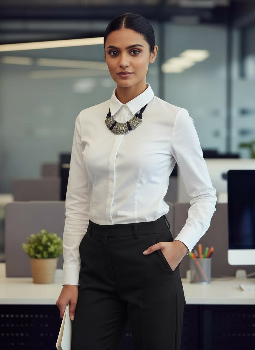 | This silver-plated ornamental belt necklace features three intricately carved panels with traditional motifs, suspended on a sleek black fabric base. The bold rectangular elements echo ceremonial grandeur and cultural artistry, making it a striking accessory for festive or folk-inspired ensembles. Its structured design and gleaming finish offer a regal statement infused with heritage and craftsmanship. |