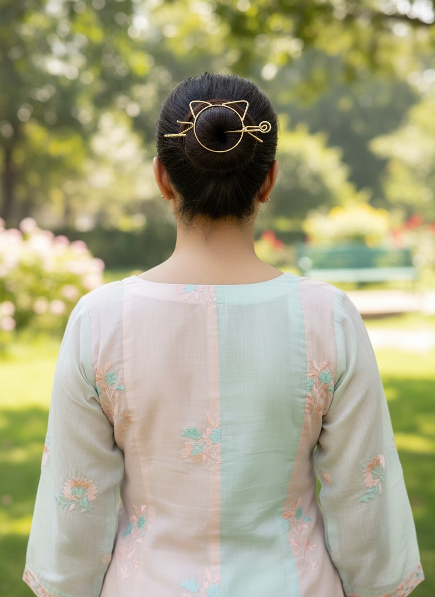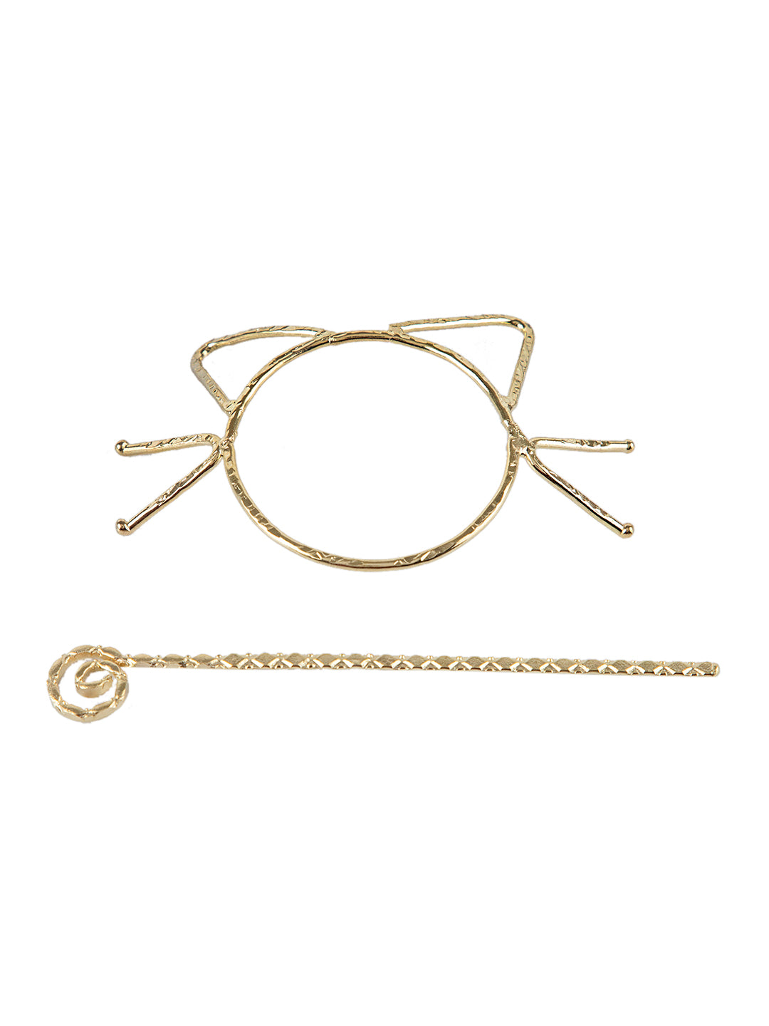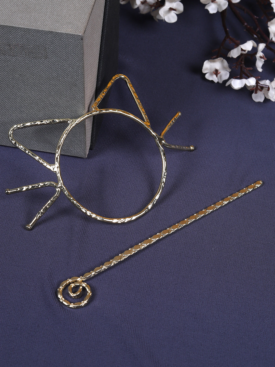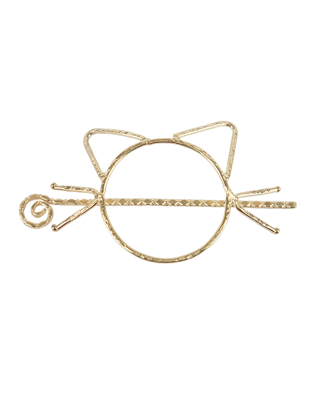This exquisite hair accessory features a cat-shaped design with elegantly textured metallic details. Perfect for adding a touch of playful sophistication and charm to any hairstyle.