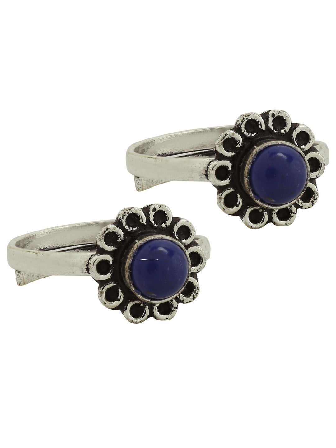 Step into charm with these intricately designed oxidized silver toe rings, crafted to bring vintage elegance to every step. Each toe ring features a delicate sunburst or floral motif with textured detailing that catches the eye—perfect for imbibing a rustic, old-world feel to your look.
