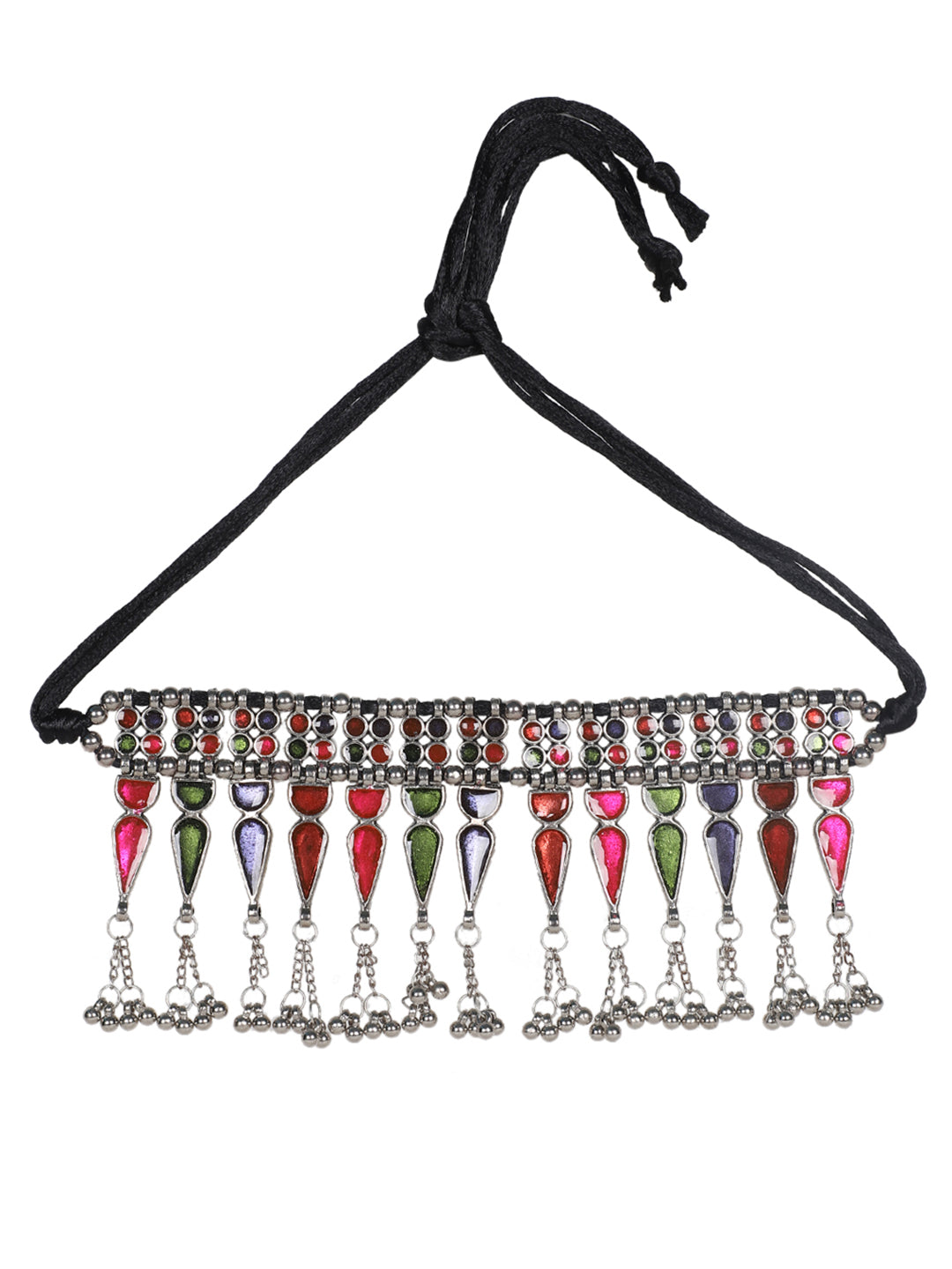 Make a bold style statement with this vibrant Afghani-inspired choker, beautifully designed with intricate detailing and multi-coloured enamel work. The traditional craftsmanship reflects ethnic charm, while the colourful enamel accents bring a lively, artistic touch to the piece.