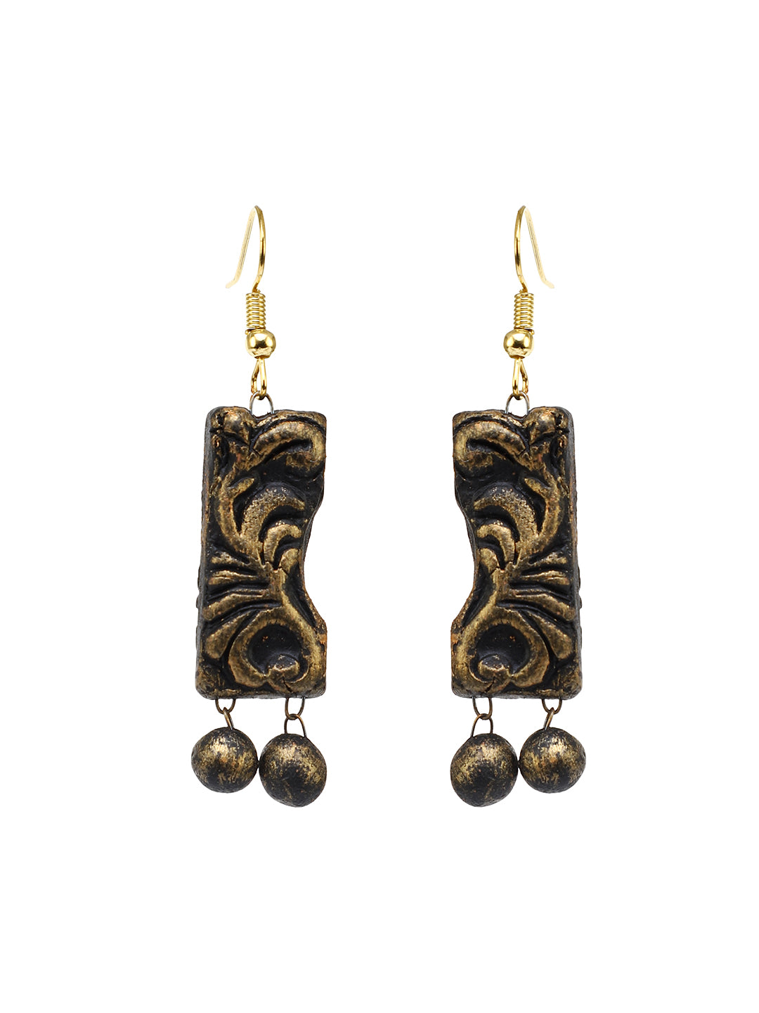 Pratham Shree is a handcrafted terracotta necklace centered around a beautifully carved Ganesha pendant—symbol of wisdom, beginnings, and protection. Shot on a sunlit terrace, this piece blends divine detail with rustic elegance. The pendant sits amid a flow of patterned brass accents and bold earthy textures, making it perfect for festive styling or cultural showcases.