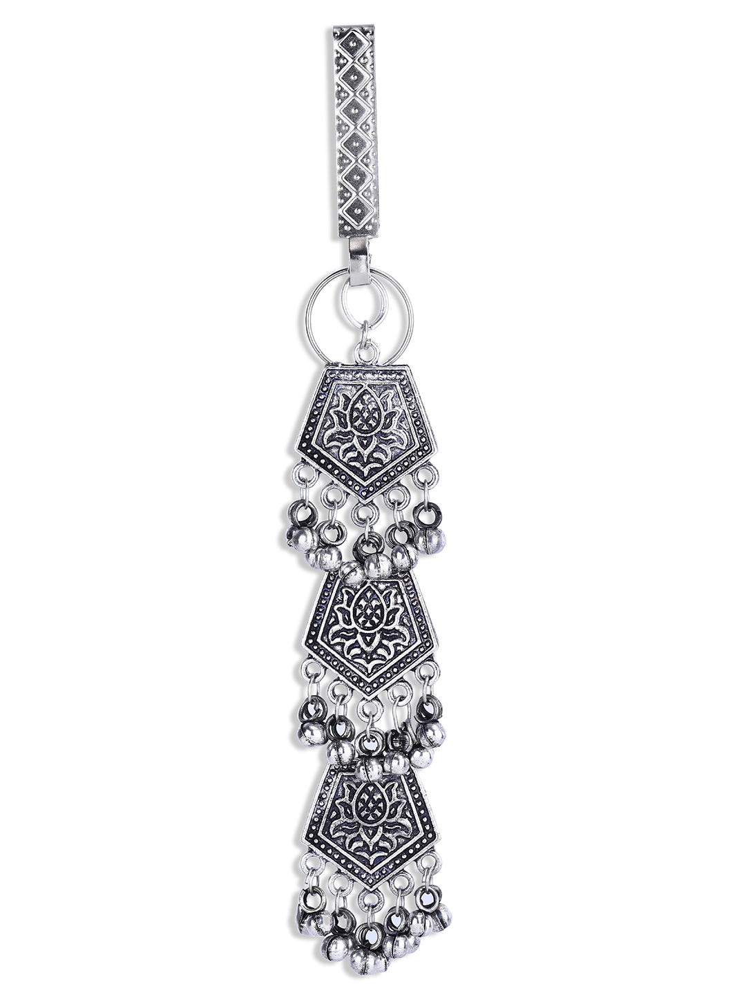 Elevate your traditional look with this exquisitely crafted oxidized silver-toned saree gutcha, designed to add just the right touch of oomph to your saree. Adorned with intricate detailing, it effortlessly blends vintage charm with ethnic elegance, making it the perfect accessory to enhance both plain and embellished drapes.